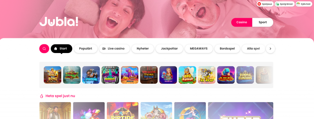 Jubla Casino är en av de färskaste lanseringarna på den svenska marknaden och lyckas sticka ut redan från start. Här är det enkelhet och spelupplevelse som står i centrum: ett modernt casino utan krångel, byggd för dig som vill komma igång direkt. I vår recension går vi igenom allt från design och spelutbud till betalningar och support.